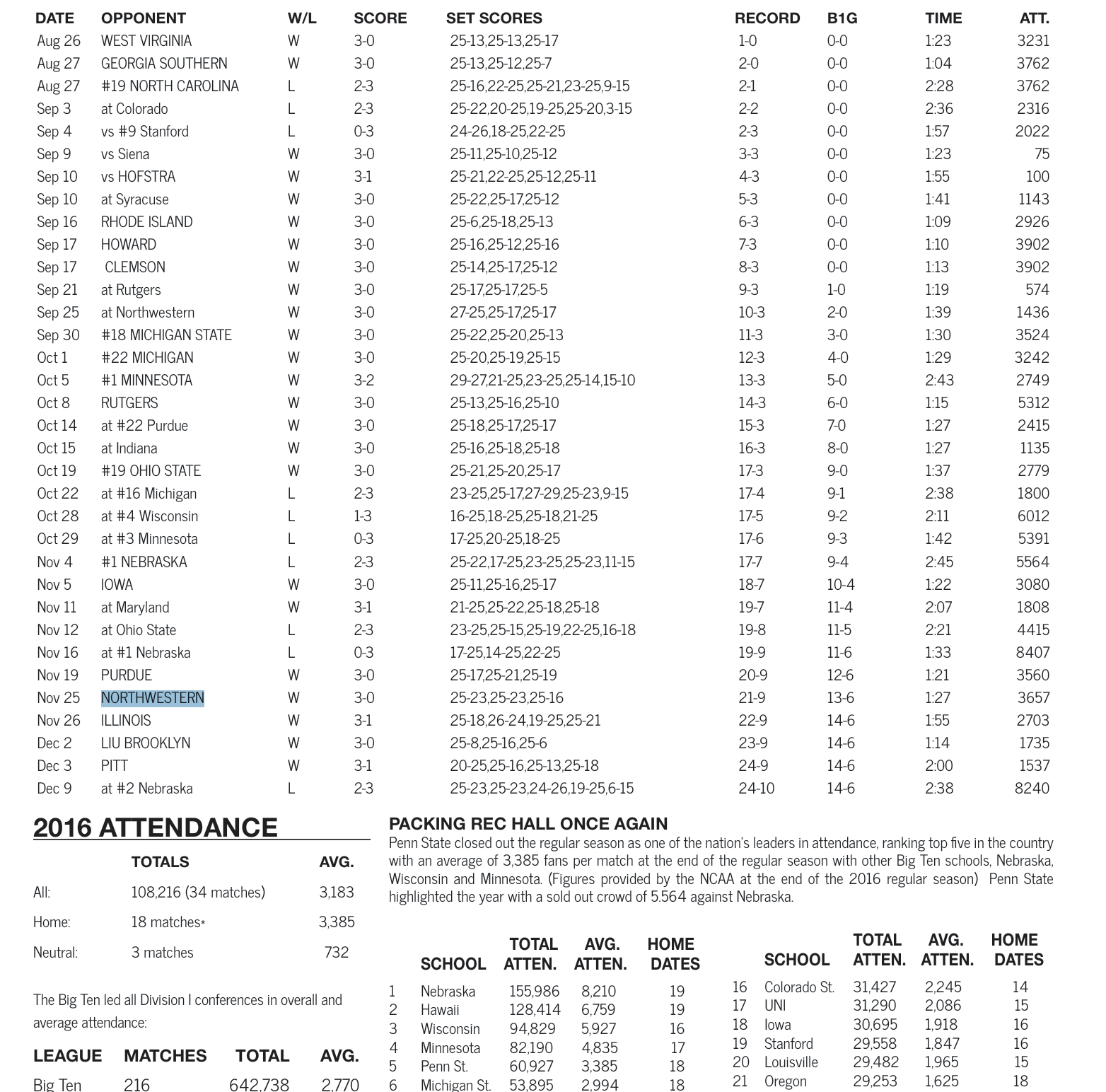 Overall Record: 24-10, Home 16-2, Away 6-6, Neutral 2-22016 PSU Roster