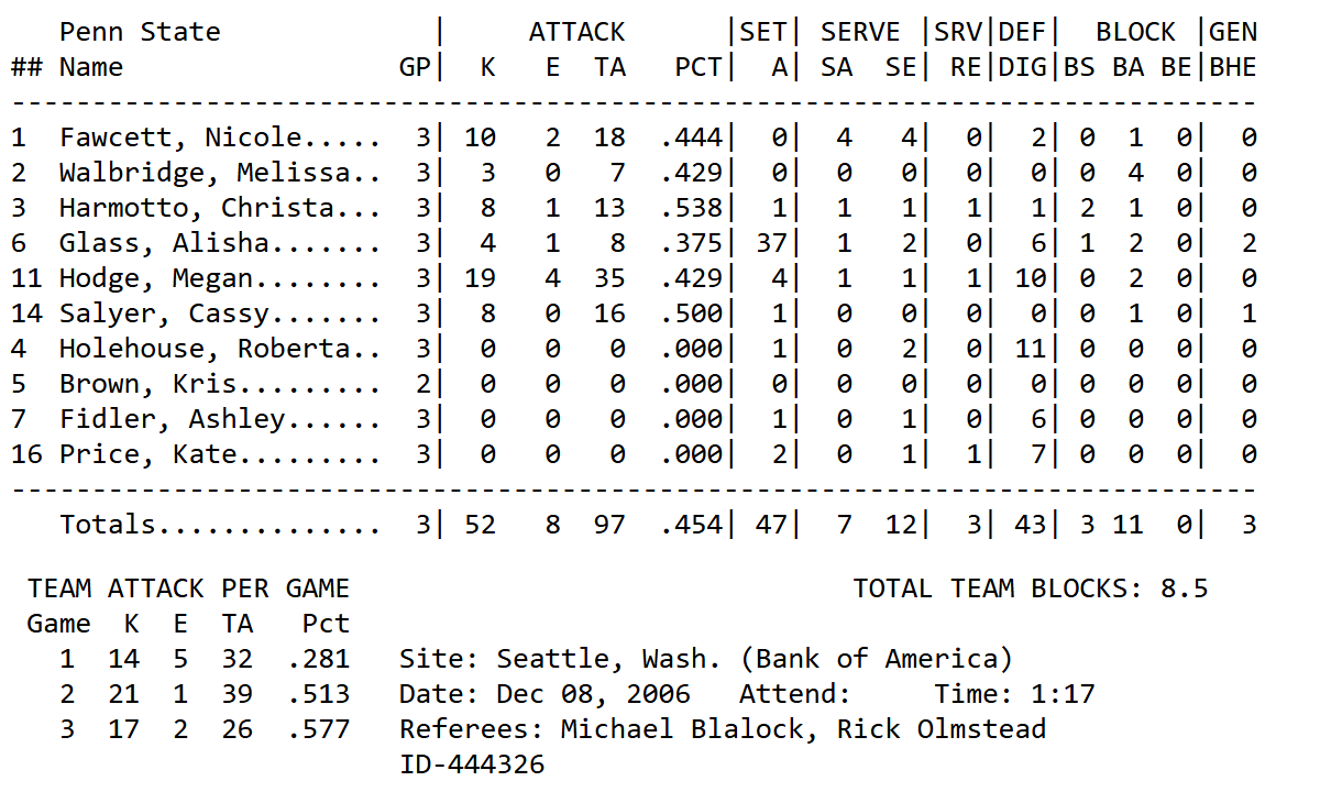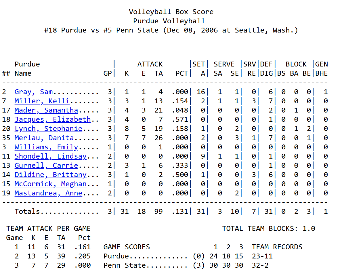 Posted in 2006 SeasonTagged 2006, NCAA Women's Volleyball Tournament 2006, Penn State vs Purdue December 8