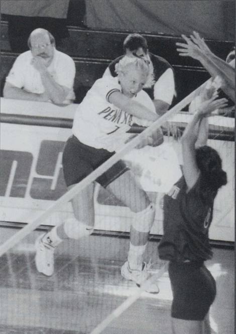 Before Penn State: An all-around athlete at Portage Central High School, Schonveld started for three seasons as the center on the basketball team, competed three years in the high jump, discus and shot put for the track team, and started all four seasons at outside hitter for the volleyball team; her list of honors is lengthy: four-year all-conference selection; three-year conference MVP; two-year All-State first team; one-year All-State second-team; two-time member of the Detroit Free Press Dream Team; the 1995 Michigan Gatorade Player of the Year and a Volleyball Monthly “Fab 50” selection; she led her volleyball, basketball and track teams to conference championships in her senior year and earned Portage Central’s Female Athlete of the Year award; Schonveld served as captain of the basketball team and set school season and career records for rebounding; she also claimed all-conference honors in the shot put and set school records in the high jump and discus; she also excelled in the classroom, earning the B’nai B’rith scholar-athlete award and the Optimist Club award.