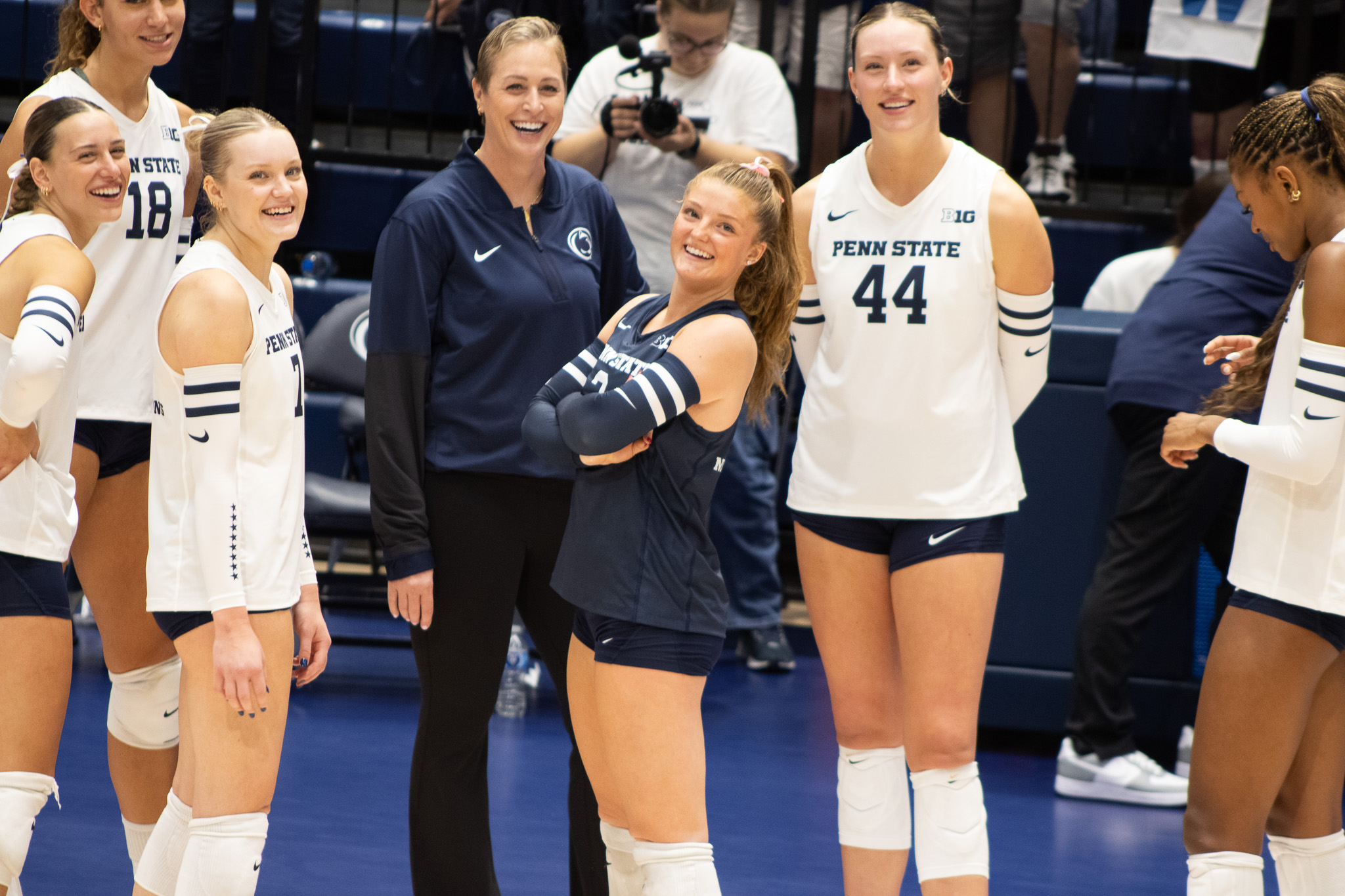 The Penn State women’s volleyball team will be honored on the field during the Penn State vs. Oregon White Out football game Saturday night. All four commits from Penn State’s 2027 recruiting class — Nejari Crooks, Taylor Harrington, Olivia Henry, and Molly Robertson — will be in attendance for the USC match Friday night, and Saturday’s highly anticipated top-10 matchup at Beaver Stadium, as part of their official visit weekend.