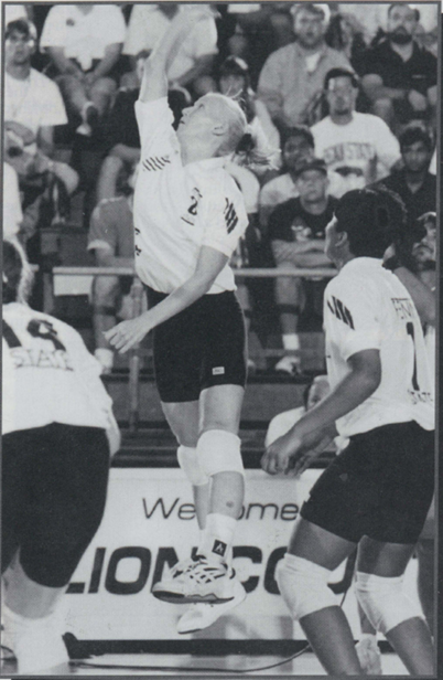 1997 Season (Junior): Played in 117 of 120 sets, and all 36 matches … Big Ten Player of the Week (11/31) … ranked 5th on the team with a 2.11 kills/set average, hitting .235 … tied for 2nd on the team (with Carrie Schonveld) with 30 service aces … ranked 3rd on the team with 1.05 blocks/set.