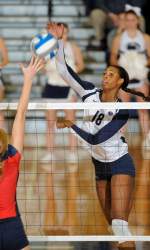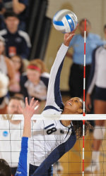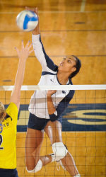In 2011, Deja McClendon was an AVCA First Team All-American, was named to the NCAA Lexington Regional All-Tournament Team, and earned First Team All-Big Ten honors. She led the Nittany Lions with 432 kills, tied with Ariel Scott for the team lead with 3.54 kills/set (9th in the Big Ten), ranked third on the team with 245 digs and 2.01 digs/set, and was fourth on the team with 61 total blocks. This after a 2010 season in which she was named the AVCA Division I National Freshman of the Year and the NCAA Championship Most Outstanding Player (the second freshmen to win that award — Stanford’s Kerri Walsh being the first).
