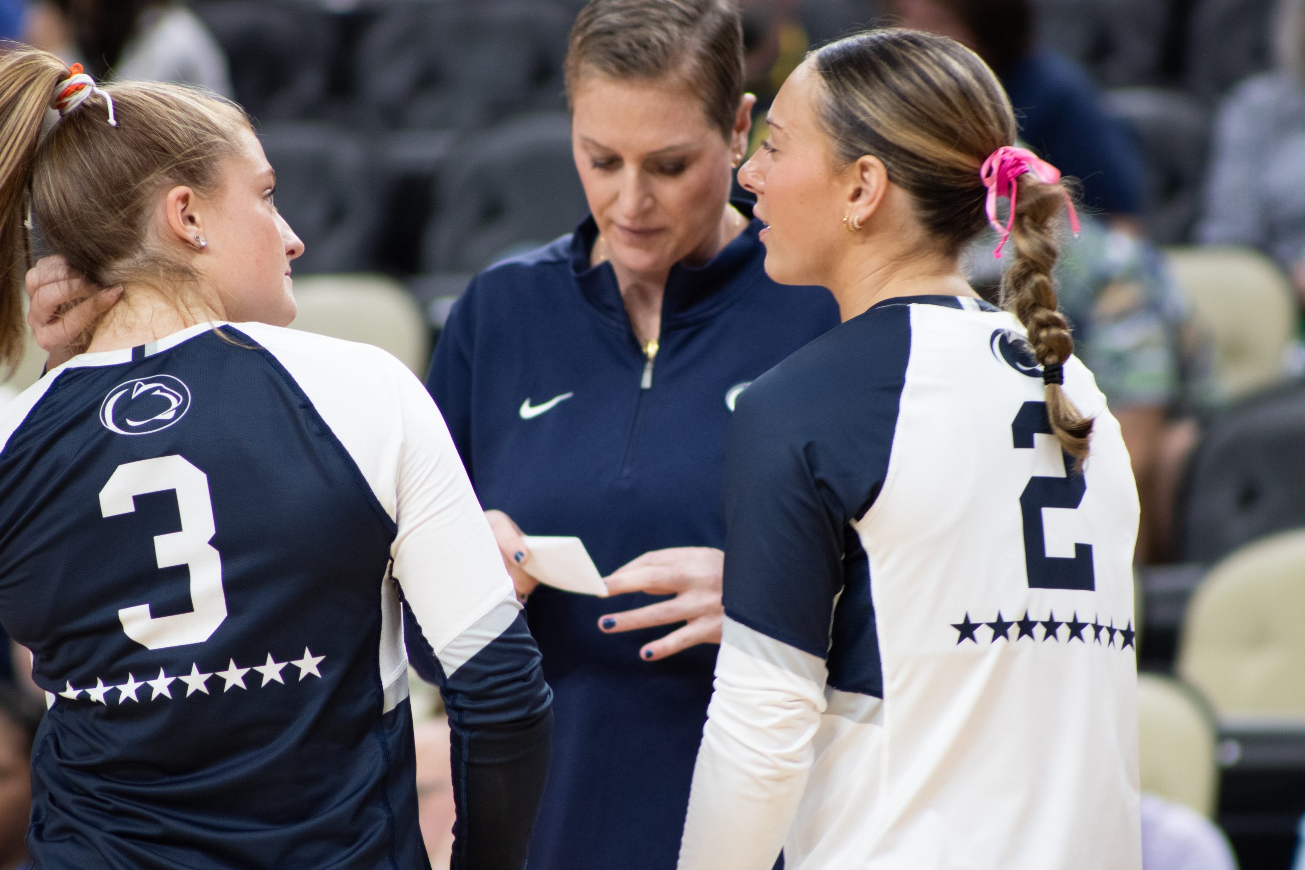 Coach Katie: I think it was a couple days of practice and resting their bodies when they can. And I think they understand that this is the last weekend at home and to embrace it and kind of be in the moment and enjoy it. There’s not a lot of places like Rec Hall. And so I think it’s nice sometimes to sit back and take a look around and enjoy our fans and the people that support us. So one more on Sunday, and send their seniors off in the right way.