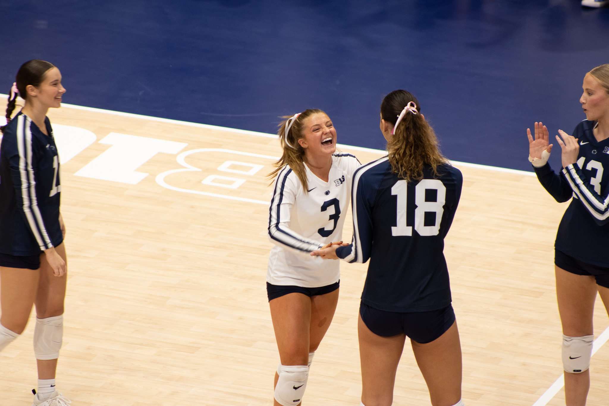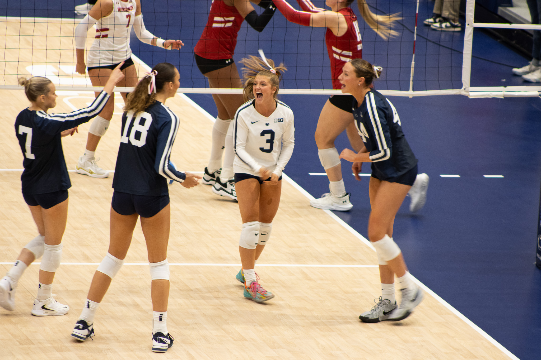 The Nittany Lion defense held Wisconsin to .151 hitting, with Gillian Grimes totaling 9 digs, Kennedy Martin 8 digs, and Ava Falduto 7 digs.