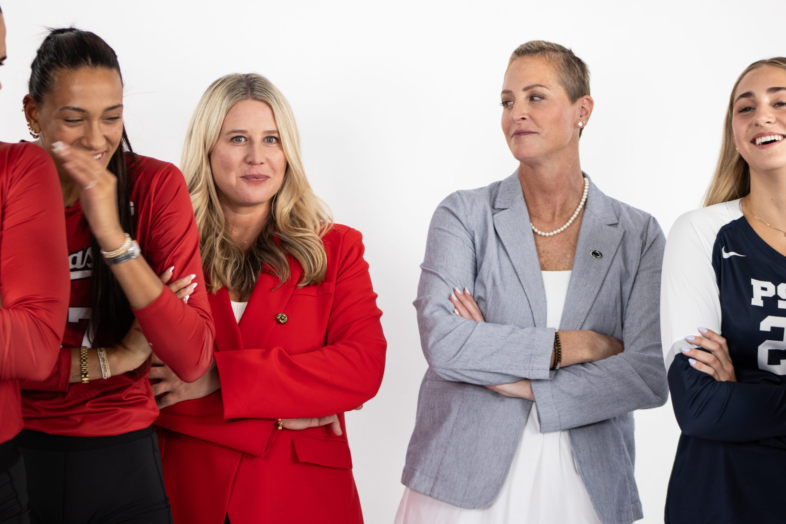 As projected top-three teams in the AVCA preseason poll, the Nittany Lions and Nebraska were the two headliners of day one, and when they crossed paths for the third or fourth time of the day during the photo shoot portion, Schumacher-Cawley suggested the two rivals take some fun shots together.