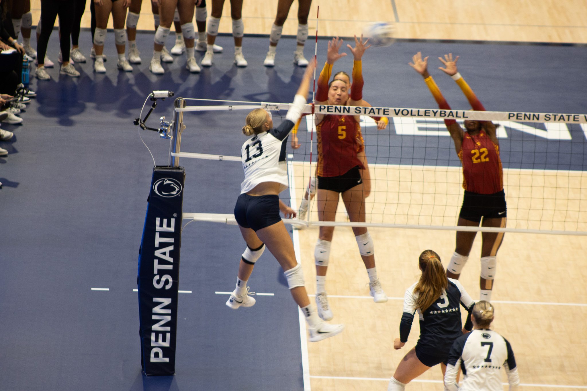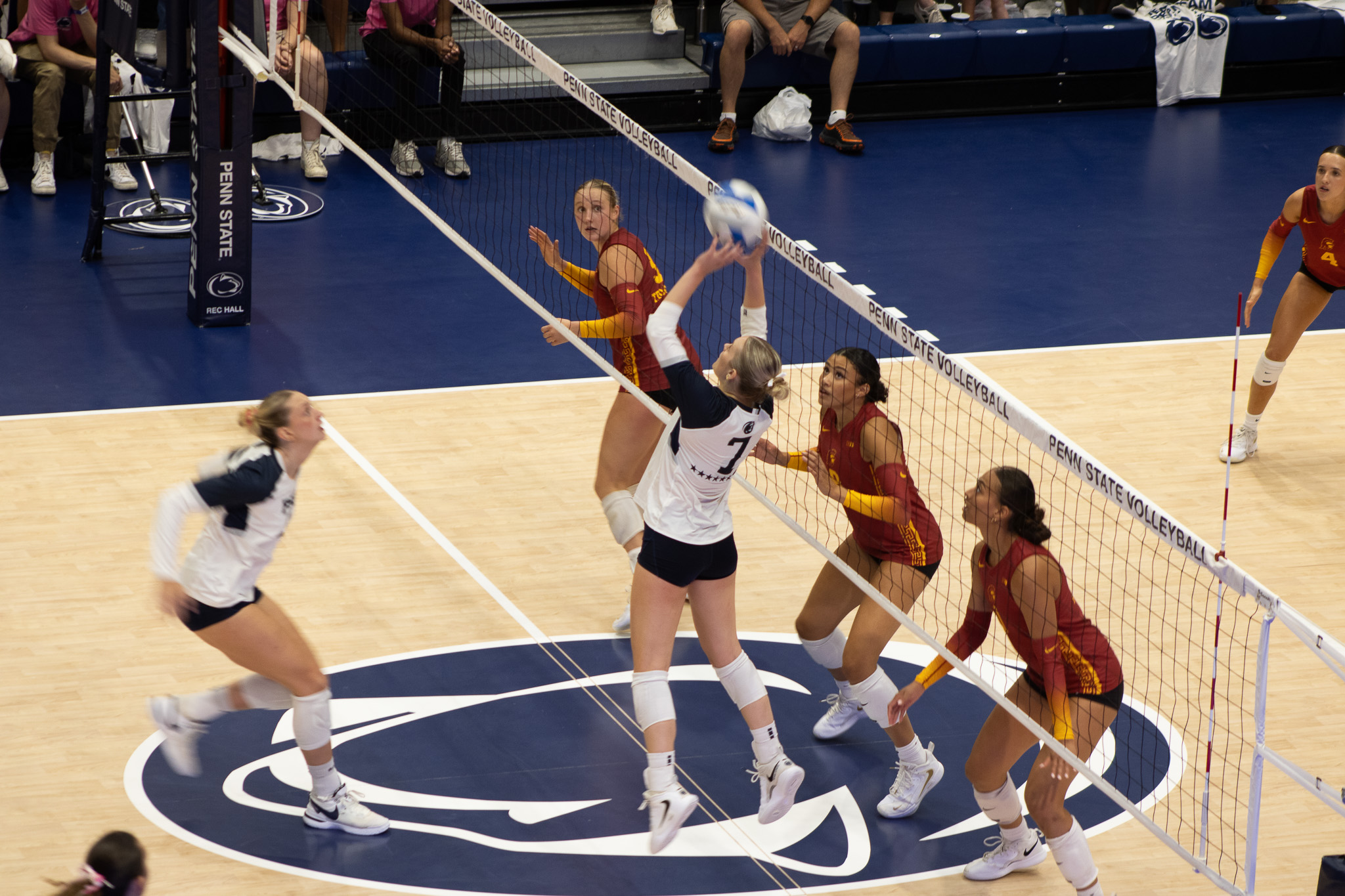 In Set 1, Penn State hit .542 and Southern Cal hit .000. Oof. Set 2 was closer, with the Nittany Lions hitting .333 and the Trojans hitting .222 — still a dominant performance by Penn State.