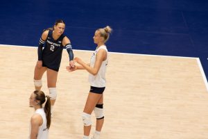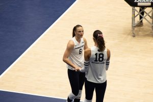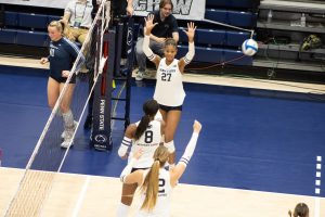 Penn State was looking to continue that record against the Wildcats, and won the first two sets handily, taking a quick 2-0 lead in the match (25-13, 25-14). However, the Villanova Wildcats started to show grit in the latter half of the match, winning the third set (23-25) and pushing Penn State to extra points in the fourth set 26-24). The Lions outhit the Wildcats 0.284 vs 0.089 and had more kills (53 to Villanova’s 42), and utilized their height advantage over the Wildcats to outblock Villanova 17-6. However, the Wildcats took a slight edge on digs 38-35.