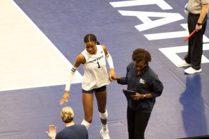 Senior Jocelyn Nathan and sophomore Lexi Gin will likely compete for the main defensive specialist role coming in for one of the outsides. Both also wore the libero jersey in the match and contributed 4 and 2 digs respectively.