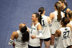 Rounding out this group were Emmi Sellman and Alexis Ewing. The two outsides contributed 5 and 5.5 points respectively. Sellman and Ewing, who are coming into their second year as Nittany Lions, will both be in the competition for an outside hitter spot. They feature a cerebral approach to hitting — identifying blocks and angles instead of using overwhelming power. Sellman passed the most balls of the outsides in the 4-set match with decent success while Ewing was the outside that had the most blocks.